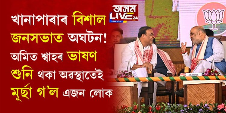 অসম লাইভ ২৪ঃ খানাপাৰাত অনুষ্ঠিত বিশাল জনসভাত অঘটন। মানুহৰ ভিৰত মূৰ্ছা গ’ল এজন ব্যক্তি। গুৰুতৰভাৱে অসুস্থ ব্যক্তিগৰাকীক তাৎক্ষণিকভাৱে চিকিৎসালয়লৈ প্ৰেৰণ। আনহাতে এই বিশাল জনসভাত অমিত শ্বাহৰ ভাষণৰ মাজতেই ওলাই আহিছে একাংশ জনতা।