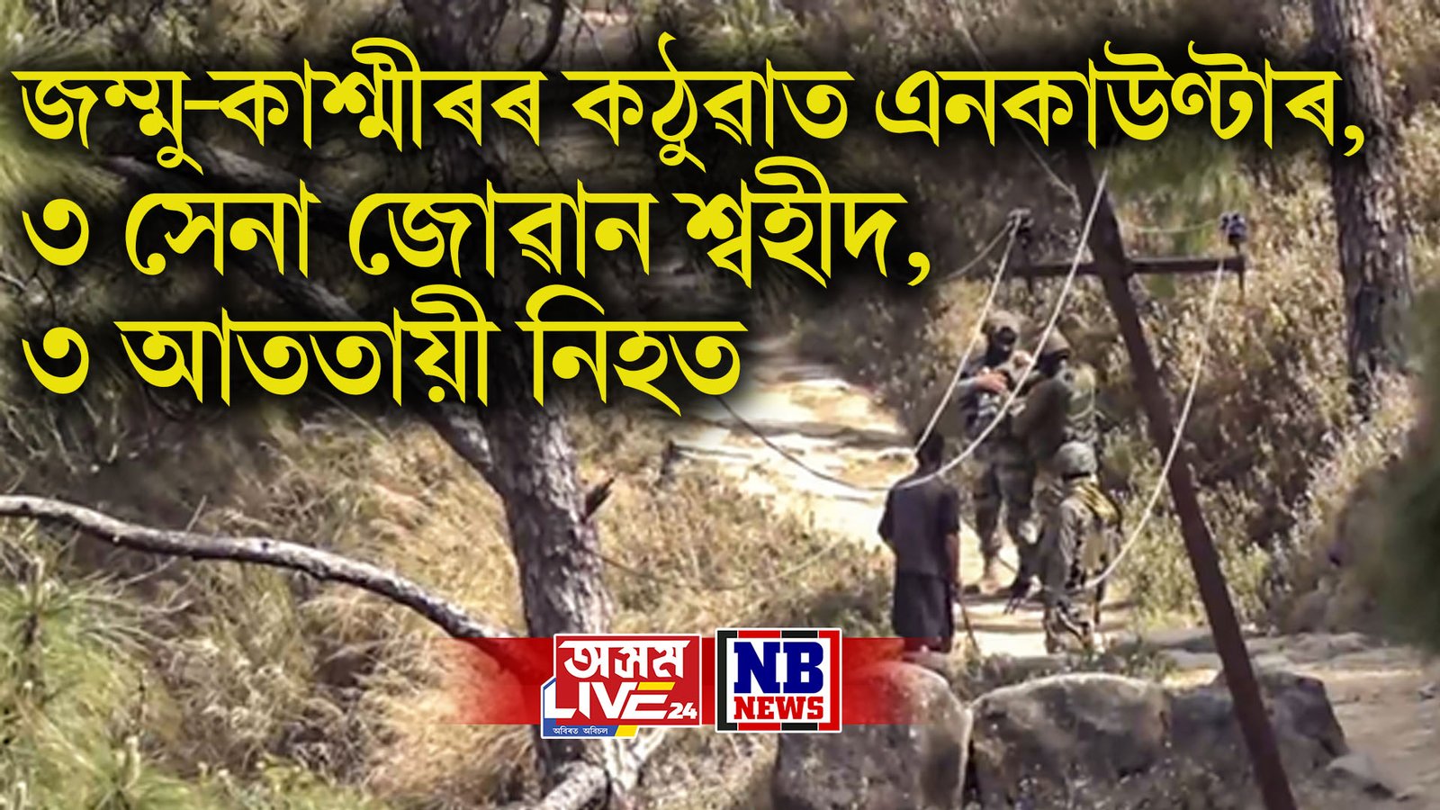 জম্মু-কাশ্মীৰৰ কঠুৱাত এনকাউণ্টাৰ, ৩ সেনা জোৱান শ্বহীদ, ৩ আততায়ী নিহত