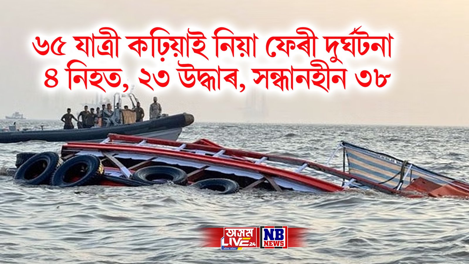 ৬৫ যাত্ৰী কঢ়িয়াই নিয়া ফেৰী ডুব যোৱাৰ ফলত ৪ জনৰ মৃত্যু, ২৩ জনক উদ্ধাৰ, সন্ধানহীন ৩৮