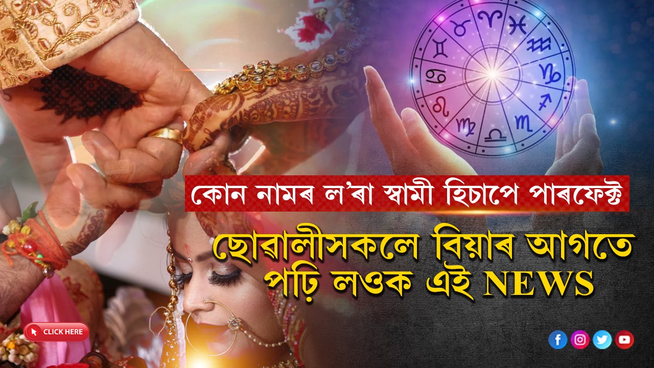 ডিজিটেল ডেস্কঃ  প্ৰেম যিমানেই গভীৰ নহওক,  বিয়াৰ সিদ্ধান্ত গ্ৰহণ কৰাৰ সময়ত সকলো ছোৱালীয়েই বহু কথা ভাৱে। স্বামীয়ে ভৱিষ্যতটো সুৰক্ষা, মৰম-চেনেহেৰ আগুৰি ৰাখিবনে নাই ইত্যাদি বিভিন্ন দিশক লৈ শংকা থাকে এগৰাকী যুৱতীৰ। কিন্তু জ্যোতিষশাস্ত্ৰৰ ইংৰাজী বৰ্ণমালাৰ বিশেষ দুটা আখৰেৰে নাম আৰম্ভ হোৱা লৰাই সদায়েই সুখত ৰাখে পত্নীক।  পিতৃ-মাতৃৰ দৰে সদায়েই তেওঁলোকে আগুৰি ৰাখে পত্নীক।