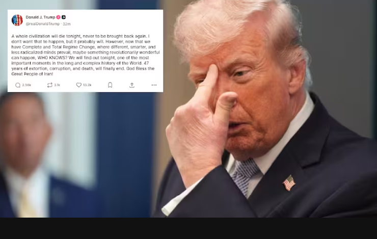 চৰম উত্তেজনা এতিয়াও মধ্যপ্ৰাচ্যত৷ ডেডলাইন দিয়া হৈছিল ৪৮ ঘণ্টাৰ৷ সেই সময়সীমা শেষ হোৱাৰ পূৰ্বেই ইৰানক কাৰ্যত সম্পূৰ্ণৰূপে ধ্বংস কৰি দিয়াৰ অশ্লীল ধমকি দিলে আমেৰিকান প্ৰেছিডেণ্ট ডোনাল্ড ট্ৰাম্পে৷ মঙ্গলবাৰে ছচিয়েল মিডিয়াত পোষ্ট কৰি ডোনাল্ড ট্ৰাম্পে লিখিছে, ‘আজি নিশা এটা সভ্যতাৰ মৃত্যু হ’ব৷’
