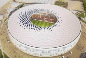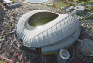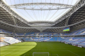 আল জানিয়ুৱ ষ্টেডিয়ামঃ এই ষ্টেডিয়ামত দৰ্শক বহিব পৰা আসন আছে ৪০ হাজাৰ। মুঠ ৭ খন খেল এই ষ্টেডিয়ামত অনুষ্ঠিত হ’ব। এই ষ্টেডিয়ামখন পূৰ্বে আকৰা ষ্টেডিয়াম নামেৰে পৰিচিত আছিল। এই ষ্টেডিয়ামৰ ছাদখন সম্পূৰ্ণৰূপে ঢাকি দিব পৰাৰ লগতে তাপমাত্ৰা কমোৱাৰো ব্যৱস্থা আছে। সকলো পৰিস্থিতিতেই যাতে খেল অনুষ্ঠিত কৰিব পাৰি তেনেধৰণেই এই ষ্টেডিয়াম নিৰ্মাণ কৰা হৈছে। আৰৱৰ এখন বিশেষ নৌকাৰ অনুকৰণেৰে নিৰ্মাণ কৰা হৈছে এই ষ্টেডিয়াম। অৱশ্যে এই ষ্টেডিয়ামৰ নক্সাই সৃষ্টি কৰিছে বিতৰ্কৰো। ব্ৰিটিছ ভাস্কৰ্য দামে জাহা হাদিদৰ নক্সা উন্মোচন কৰাৰ পিছতেই বহুতেই অভিযোগ আনিছে যে এই ষ্টেডিয়াম দেখাত মহিলাৰ এক বিশেষ অংগৰ দৰে। সমালোচনা চলিলেও আয়োজক দেশে কিন্তু ষ্টেডিয়ামৰ নক্সা সলাবলৈ কোনো কাৰণতে ৰাজী নহয়।