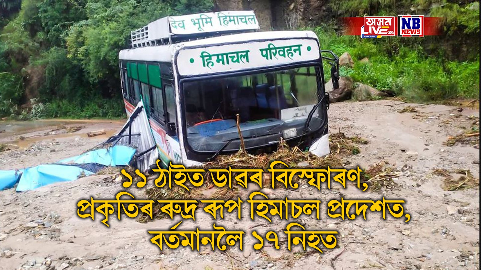 ১১ ঠাইত ডাৱৰ বিস্ফোৰণ, প্ৰকৃতিৰ ৰুদ্ৰ ৰূপ হিমাচল প্ৰদেশত, বৰ্তমানলৈ ১৭ নিহত