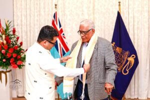 ফিজি ৰিপাব্লিকৰ ৰাষ্ট্ৰপতি ৰাতু নাইকামা লালাবালাভুৱে ২০২৫ চনৰ ১২ মে’ত ষ্টেট হাউছত সৌজন্যতামূলক আহ্বানৰ সময়ত ভাৰতৰ বৈদেশিক পৰিক্ৰমা ৰাজ্যিক মন্ত্ৰী পবিত্ৰ মাৰ্ঘেৰিটাক আদৰণি জনায়।