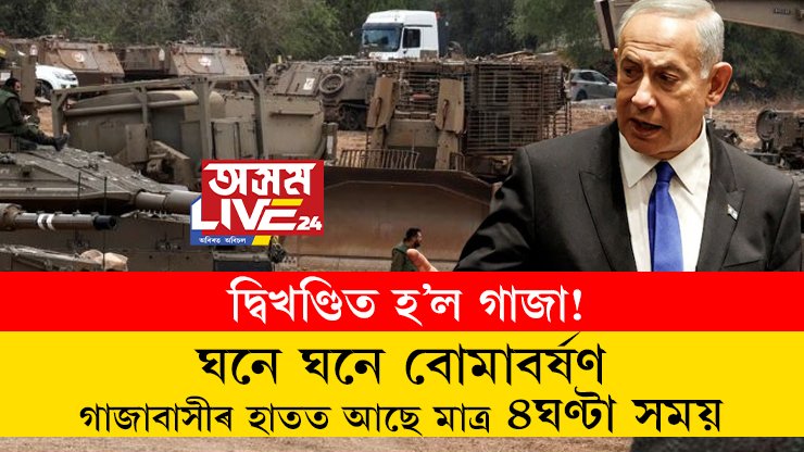 অসম লাইভ২৪ঃ ৰক্তক্ষয়ী যুদ্ধ অব্যাহত। অৱসানৰ কোনো নামগোন্ধই নাই। যুদ্ধ পৰিস্থিতি ক্ৰমাগতভাৱে ভয়াৱহ ৰূপহে লৈছে। শ শ মহিলা পুৰুষ, শিশুৰ মৃত্যুৱে বিধ্বস্ত কৰিছে গাজাক। ইয়াৰ মাজতে আৰু এক ভয়ংকৰ খবৰ ভাইৰেল হৈ পৰিছে। ইজৰাইলী সেনাই দিছে এই বিশেষ খবৰ। হামাছ নিধনৰ বাবে অমানবিয়তাৰ শেষ সীমা অতিক্ৰম কৰিছে ইজৰাইলে। পেলেষ্টাইনী জঙ্গি সংগঠনটোক শেষ কৰিবৰ বাবে সকলো প্ৰকাৰেই সাজু ইজৰাইল। ইজৰাইলী সেনাৰ তৰফৰ পৰা জনোৱা অনুসৰি ভয়ংকৰ বিস্ফোৰণত ঘটাই দ্বিখণ্ডিত কৰি দিয়া হৈছে গাজাক।