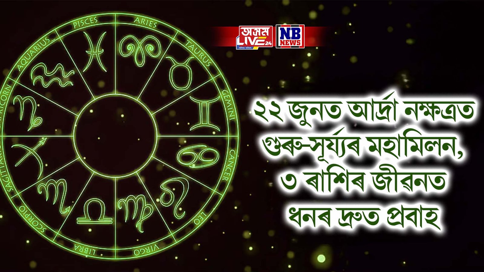 ২২ জুনত আৰ্দ্ৰা নক্ষত্ৰত গুৰু-সূৰ্য্যৰ মহামিলন, ৩ ৰাশিৰ জীৱনত ধনৰ দ্ৰুত প্ৰবাহ