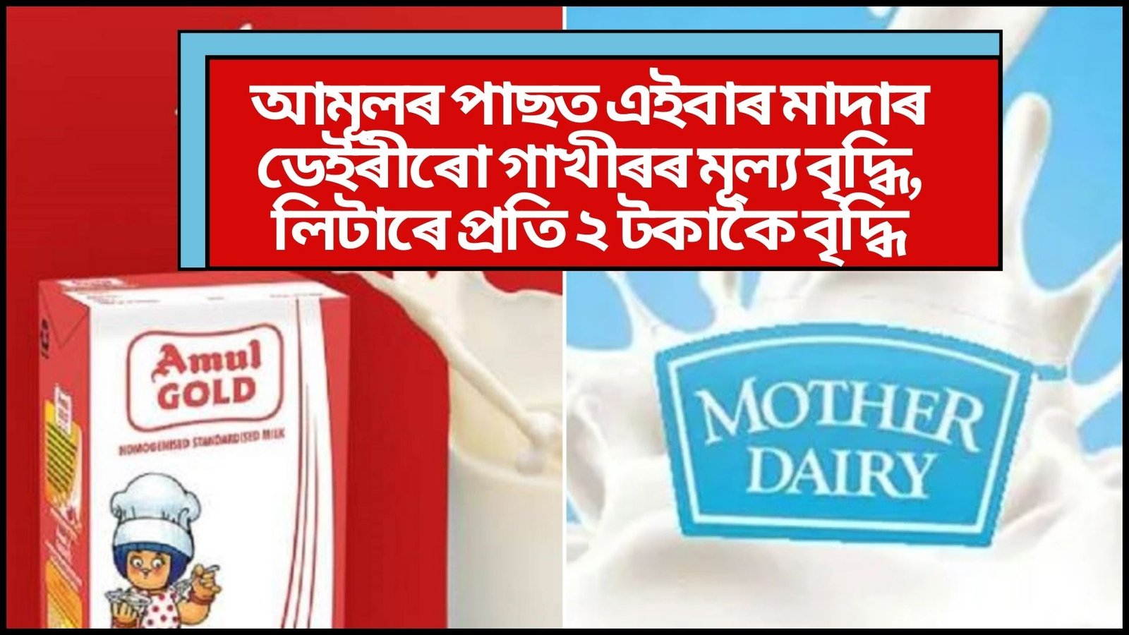 দেশজুৰি বৃদ্ধি পাইছে গাখীৰৰ মূল্য । লিটাৰে প্ৰতি ২ টকাকৈ বৃ্দ্ধি পাইছে গাখীৰৰ মূল্য। প্ৰথমে আমূল কোম্পানীৰ ফালৰ পৰা সদৰি কৰা হৈছিল গাখীৰৰ মূল্য বৃদ্ধিৰ কথা। আমুলৰ পিছতে এইবাৰ মাদাৰ ডেইৰীয়েও গাখীৰৰ দাম বৃদ্ধি কৰিছে।