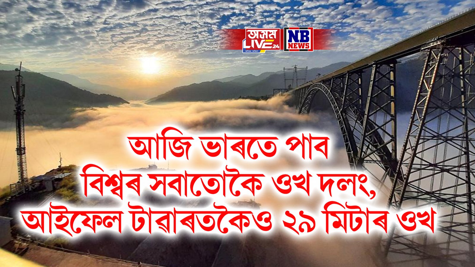 আজি ভাৰতে পাব বিশ্বৰ সবাতোকৈ ওখ দলং, আইফেল টাৱাৰতকৈও ২৯ মিটাৰ ওখ
