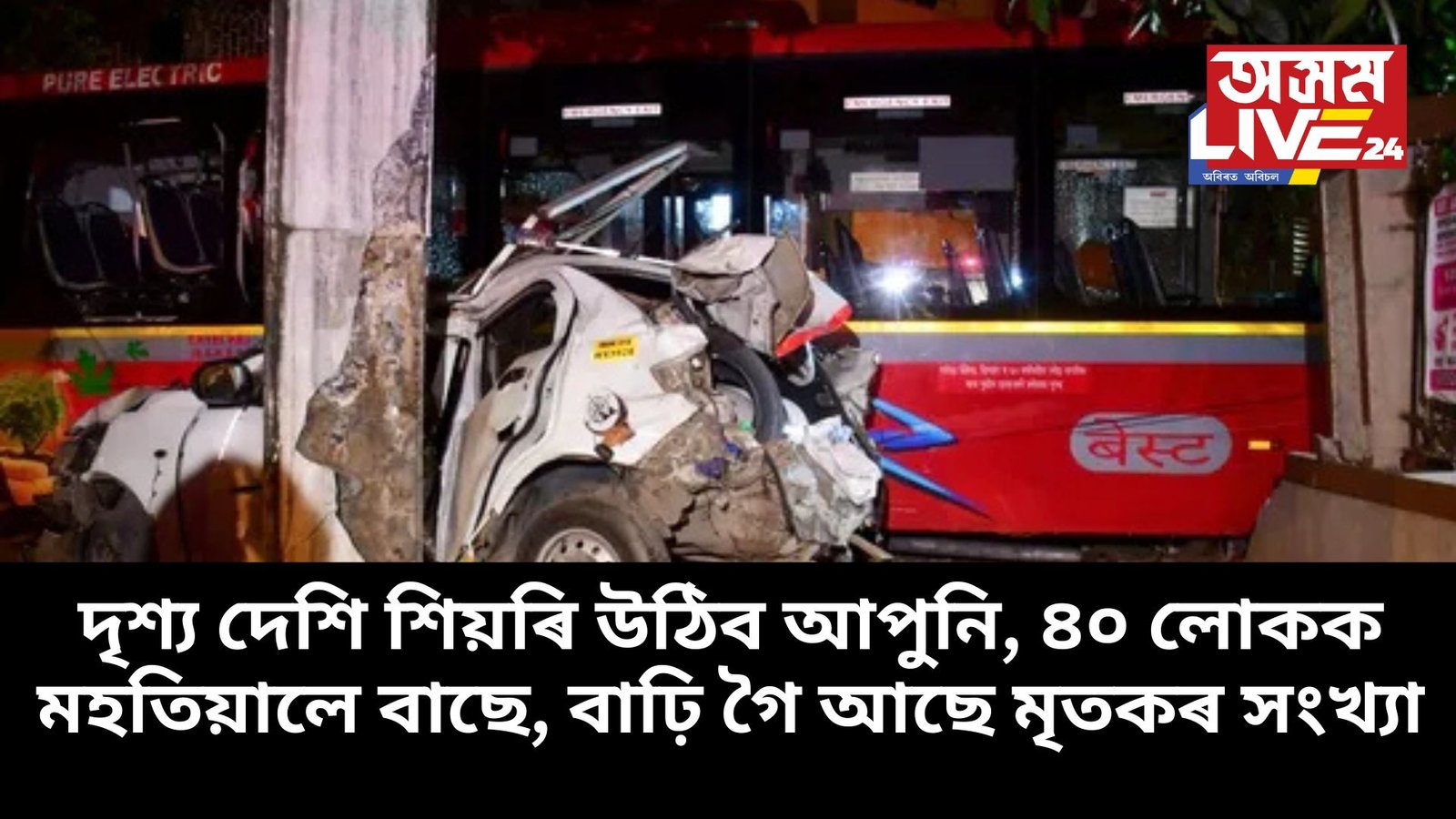 মুম্বাইৰ কুৰ্লাত ভয়ংকৰ দুৰ্ঘটনা, এখন চৰকাৰী বাছে মহতিয়াই নিলে ৪০ গৰাকীকৈ লোকক। গুৰুতৰ ভাৱে আহত বহুতো। ৪ জন লোকে ইতিমধ্যে হেৰুৱালে প্ৰাণ।