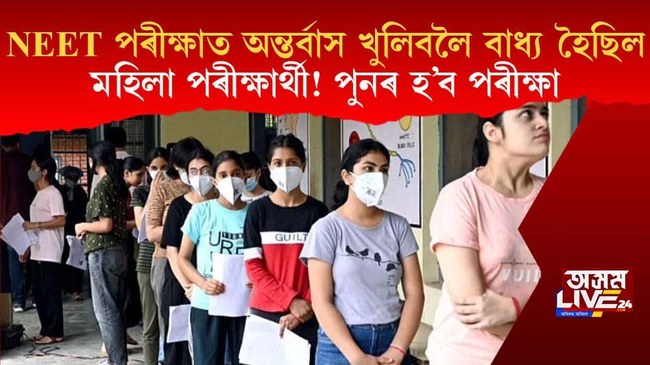 নেচনেল এলিজিবিলিটি এণ্ট্ৰেন্স টেষ্ট (NEET)ৰ পৰীক্ষাত মহিলা পৰীক্ষাৰ্থীৰ অন্তৰ্বাস খুলিবলৈ বাধ্য কৰোৱাৰ ঘটনাই সমগ্ৰ দেশজুৰি বিতৰ্কৰ সৃষ্টি কৰিছিল৷ উক্ত ঘটনাৰ ভুক্তভোগী বুলি দাবী কৰা পৰীক্ষাৰ্থীৰ বাবে ‘নেচনেল টেষ্টিং এজেঞ্চি’(NTA)ৰ পুনৰ পৰীক্ষা অনুষ্ঠিত কৰা হ’ব বুলি ঘোষণা কৰিছে৷