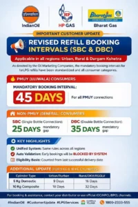এল পি জি বুকিং সন্দৰ্ভত ঘোষণা কৰা হৈছে এটা ডাঙৰ আপডেট। দুটা চিলিণ্ডাৰ (double bottle cylinder) সংযোগ থকা গ্ৰাহকে এতিয়া ৰিফিল বুকিং কৰাৰ পূৰ্বে শেষৰ ডেলিভাৰীৰ পৰা ৩৫ দিন অপেক্ষা কৰিব লাগিব। পূৰ্বে এই ব্যৱধান আছিল ২৫ দিনৰ। এই নিয়ম চহৰ আৰু গ্ৰামাঞ্চল উভয়তে প্ৰযোজ্য হ’ব।