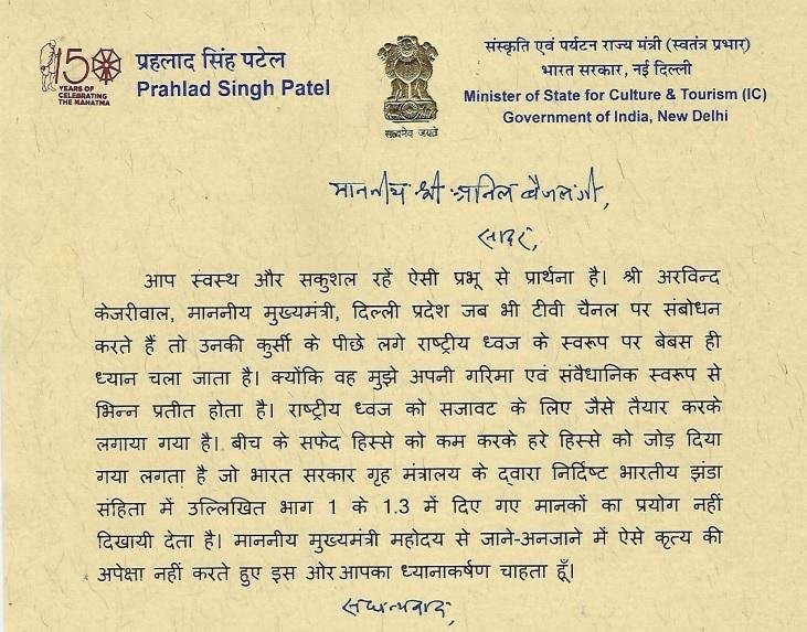 প্ৰহ্লাদ সিং পাটেলে পত্ৰযোগে অৰবিন্দ কেজৰিৱালক ইয়াৰ শুধৰণি কৰিবৰ বাবে আহ্বান জনোৱাৰ লগতে অনিল বৈজলকো বিষয়টো গুৰুত্ব সহকাৰে ল’বৰ বাবে আহ্বান জনায়।