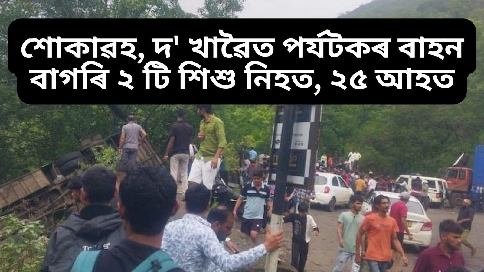 শোকাৱহ, দ’ খাৱৈত পৰ্যটকৰ বাহন বাগৰি ২ টি শিশু নিহত, ২৫ আহত, মৃতকৰ সংখ্যা অধিক বৃদ্ধি পোৱাৰ আশংকা