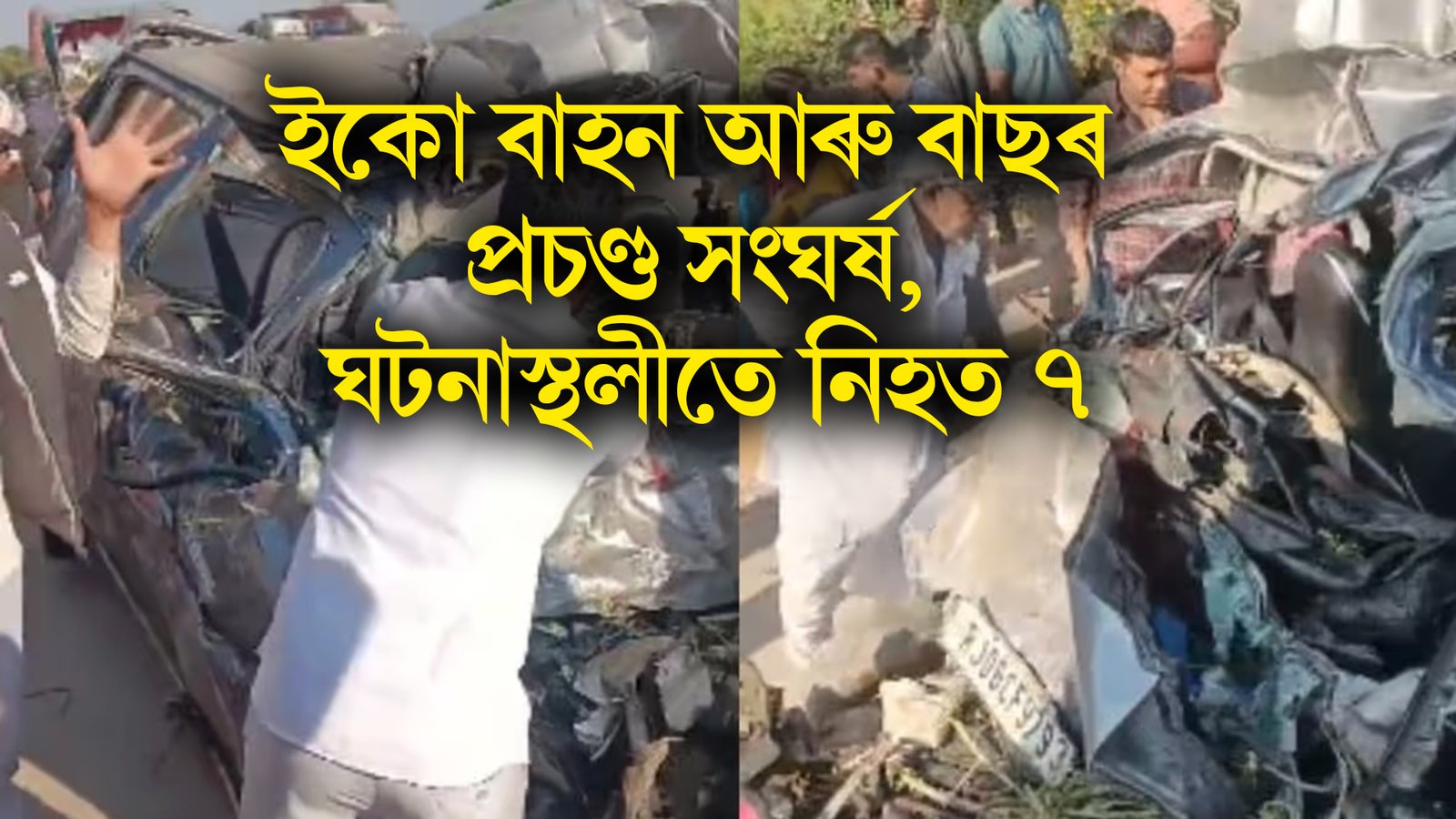 চাৰিচকীয়া বাহন আৰু যাত্ৰীবাহী বাছৰ প্ৰচণ্ড সংঘৰ্ষ, ঘটনাস্থলীতে নিহত ৭
