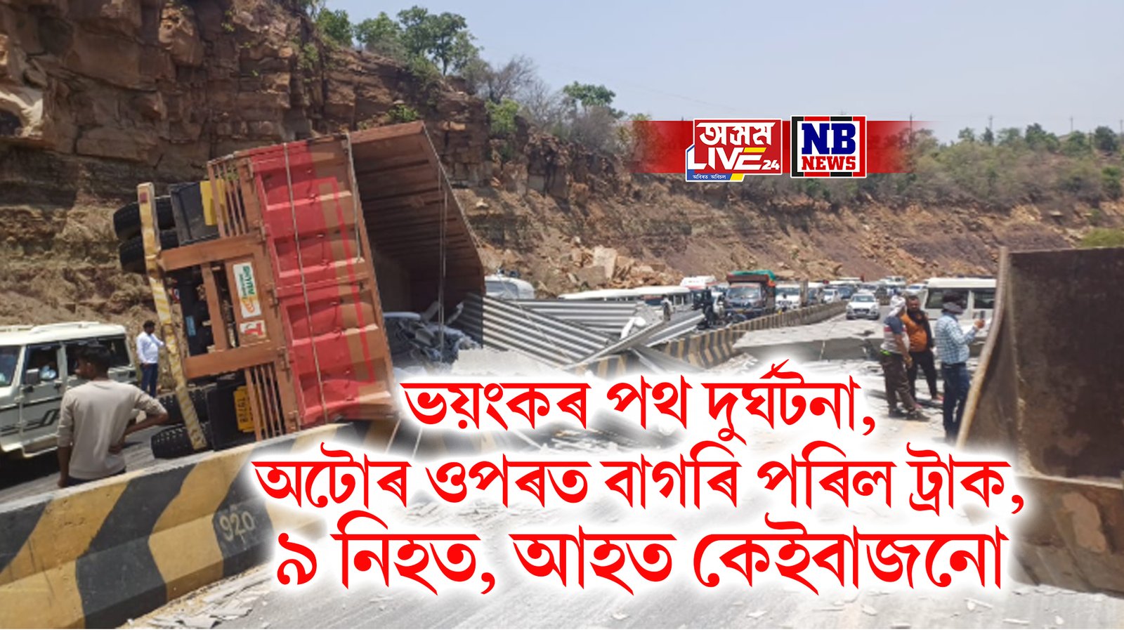 ভয়ংকৰ পথ দুৰ্ঘটনা, অটোৰ ওপৰত বাগৰি পৰিল ট্ৰাক, ৯ নিহত, আহত কেইবাজনো