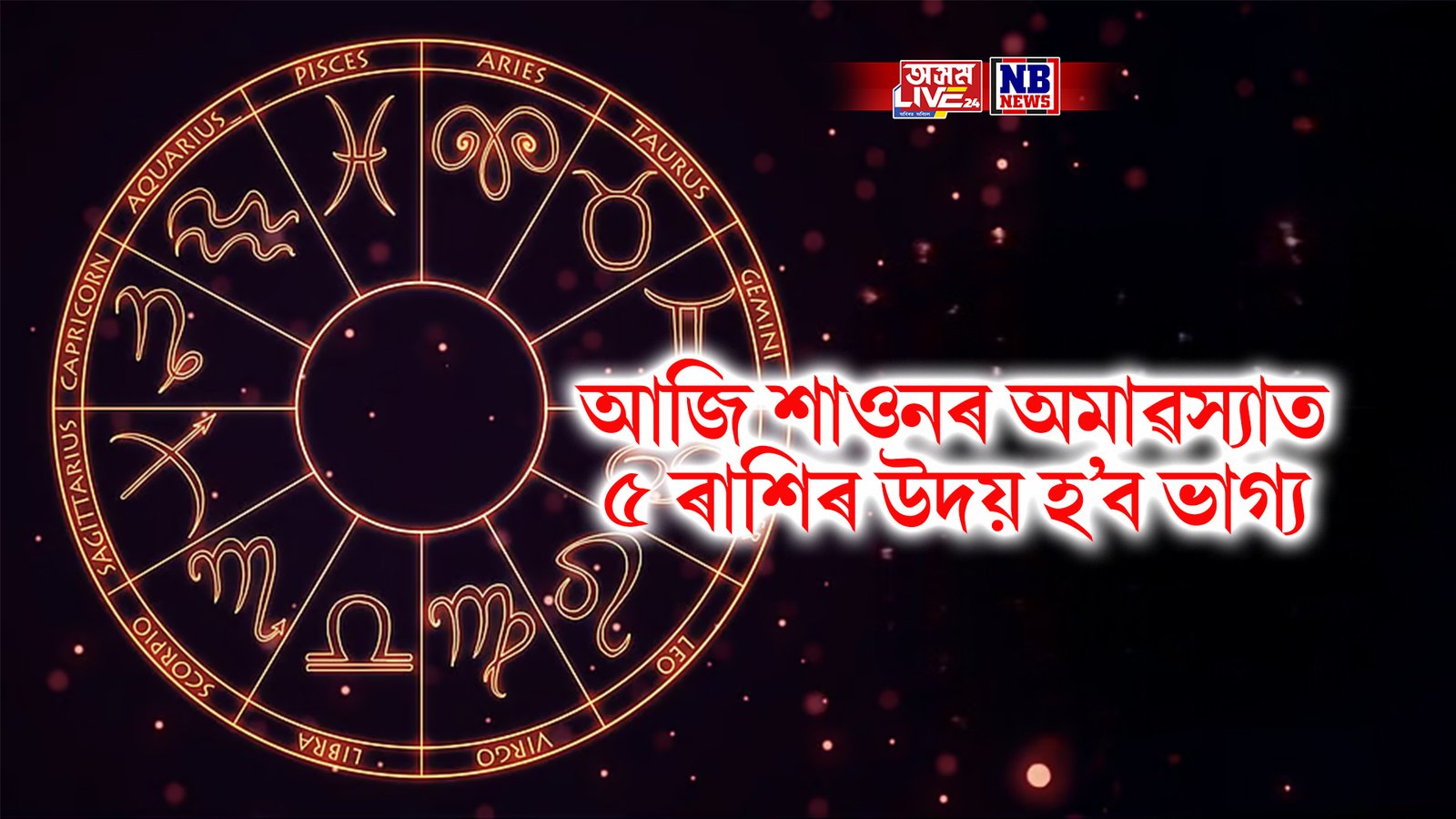 আজি শাওন মাহৰ অমাৱস্যা। এই দিনটো ৫ ৰাশিৰ বাবে বহুত ভাল হ’বলৈ গৈ আছে। এই ৰাশিবোৰে আৰ্থিক লাভৰ লগতে আজি কেৰিয়াৰত বিশেষ অগ্ৰগতি লাভ কৰিব পাৰে। ইয়াৰ লগতে আজি বহু সমস্যাৰ পৰাও পৰিত্ৰাণ পোৱাৰ আশা আছে ৫ ৰাশিৰ লোকে।