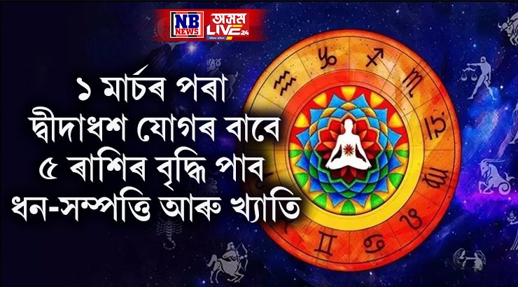জ্যোতিষৰ হিচাপ অনুসৰি ২০২৫ চনৰ ১ মাৰ্চ শনিবাৰে পুৱা ৯:৩৪ বজাৰ পৰা সূৰ্য্য আৰু শুক্ৰ ইটোৱে সিটোৰ পৰা ৩০ ডিগ্ৰী দূৰত্বত অৱস্থিত হৈ শুভ দ্বিদাধশা যোগ গঠন কৰিব।