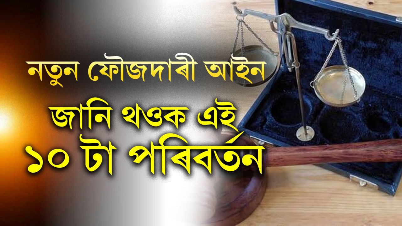 ১ জুলাইৰ পৰা দেশত তিনিখন ফৌজদাৰী আইন কাৰ্যকৰী হৈছে৷ ভাৰতৰ ফৌজদাৰি বিচাৰ ব্যৱস্থাৰ ফলত উল্লেখযোগ্য পৰিবৰ্তন আহিব৷ ঔপনিবেশিক যুগৰ পুৰণি ভাৰতীয় দণ্ডবিধি, ফৌজদাৰী কাৰ্যবিধি আৰু ভাৰতীয় সাক্ষ্য আইনৰ সলনি আজিৰ পৰা দেশত কাৰ্যকৰী হ’ল ভাৰতীয় ন্যায় সংহিতা, ভাৰতীয় নাগৰিক সুৰক্ষা সংহিতা আৰু ভাৰতীয় সাক্ষ্য অধিনিয়ম৷ এই নতুন বিধিসমূহৰ ১০ টা গুৰুত্বপূৰ্ণ দিশ জানি থওক৷