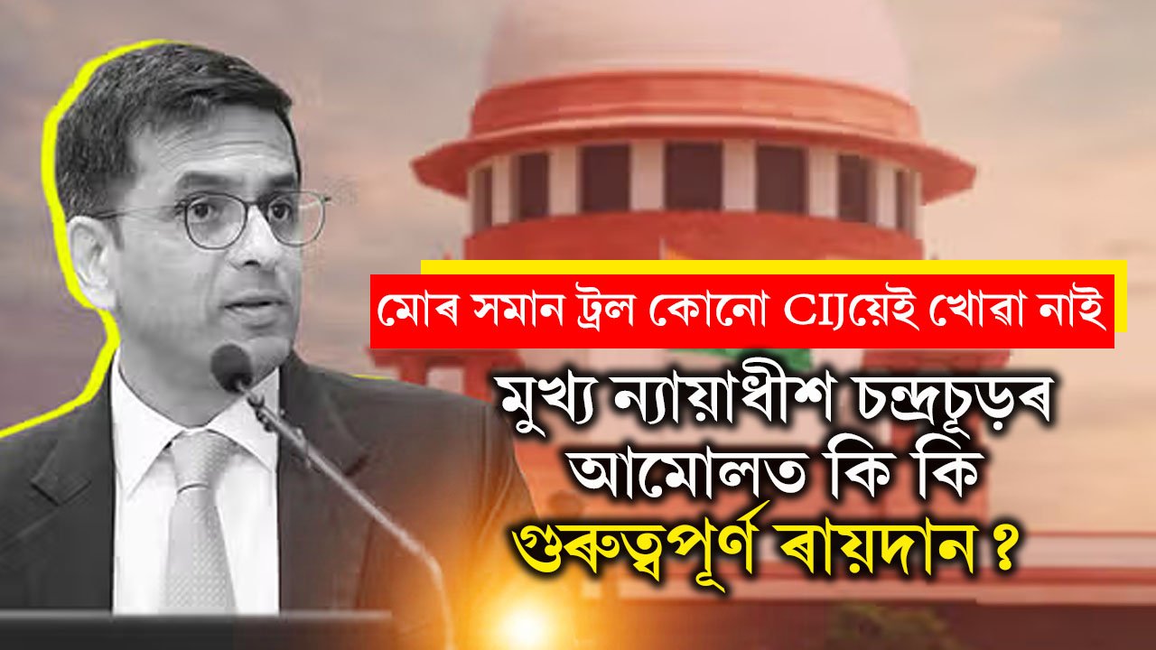 অযোধ্যাৰ ৰাম জন্মভূমি গোচৰৰ পৰা আৰম্ভ কৰি সংবিধানৰ ৩৭০ অনুচ্ছেদ বিলোপ, ডিৱাই চন্দ্ৰচূড় দেশৰ মুখ্য ন্যায়াধীশ হৈ থকাৰ সময়ত দি গৈছে একাধিক ৰায়দান৷ তেওঁৰ নেতৃত্বাধীন বেঞ্চে দিয়া ৰায়সমূহ লেখত ল’বলগীয়াই৷ বাদী-বিবাদী সমস্ত পক্ষৰ অধিবক্তাই শুনানি চলি থকাৰ সময়ত আদালতৰ ডেকোৰাম নামানিলেই কাঢ়া বাৰ্তা দিছিল মুখ্য ন্যায়াধীশগৰাকীয়ে৷