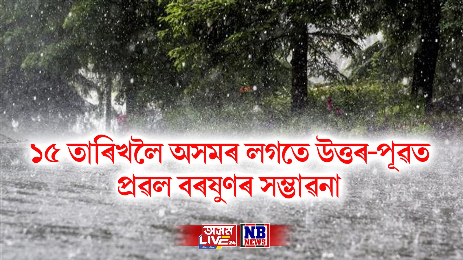 ১৫ তাৰিখলৈ অসমৰ লগতে উত্তৰ-পূৱত প্ৰৱল বৰষুণৰ সম্ভাৱনা