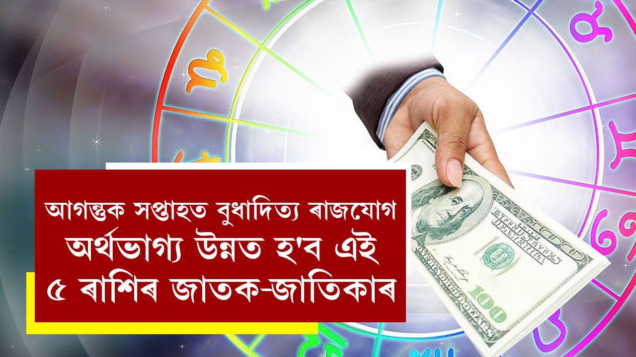 সোমবাৰে ৪ আগষ্টৰ পৰা যি নতুন সপ্তাহ আৰম্ভ হৈছে, সেই সপ্তাহত গঠিত হব বুধাদিত্য ৰাজযোগৰ প্ৰভাৱ। আগষ্ট মাহৰ প্ৰথম সপ্তাহত কৰ্কট ৰাশিত একত্ৰ অৱস্থান কৰিব সূৰ্য আৰু বুধে। এই দুই গ্ৰহৰ মিলনত কৰ্কট ৰাশিত বুধাদিত্য ৰাজযোগ গঠিত হব। জ্যোতিষশাস্ত্ৰ অনুসৰি বুধাদিত্য ৰাজযোগৰ প্ৰভাৱত ভাগ্য খুলিব কোন কোন ৰাশিৰ জাতকৰ?