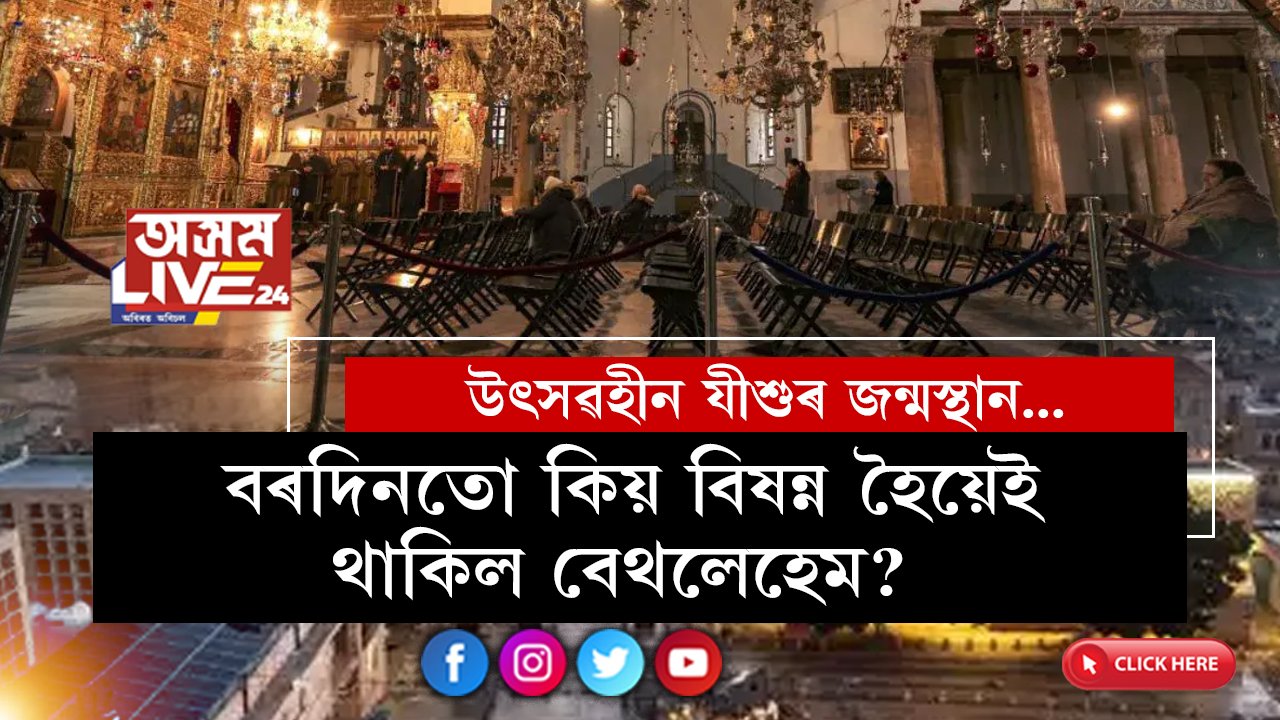 বেথলেহেমত এইবাৰ যীশু নাই, ছান্তা নাই, হৰিণ নাই, আশীৰ্বাদ, অভিবাদন, আনন্দ একোৱেই নাই। বৰদিনৰ দিনাও জনশূন্য বেথলেহেমৰ সমূহ ৰাজপথ। জনশূন্য ৰাজপথত টহল দি আছে নিৰাপত্তা বাহিনীয়ে। যুদ্ধৰ মাজতেই বেথলেহেমত ধৰ্মীয় সকলো অনুষ্ঠান বাতিল কৰা হৈছে। বিগত ৭ অক্টোবৰত ইজৰাইলত হামাছে হঠাৎ আক্ৰমণ চলাইছিল। এই আক্ৰমণৰ পাছতেই পেলেষ্টাইন আৰু ইজৰাইল দুই দেশৰ নাগৰিকেই ভালে থকা নাই। সকলোৱেই কম বেছি পৰিমানে আতংকিত হৈ আছে।