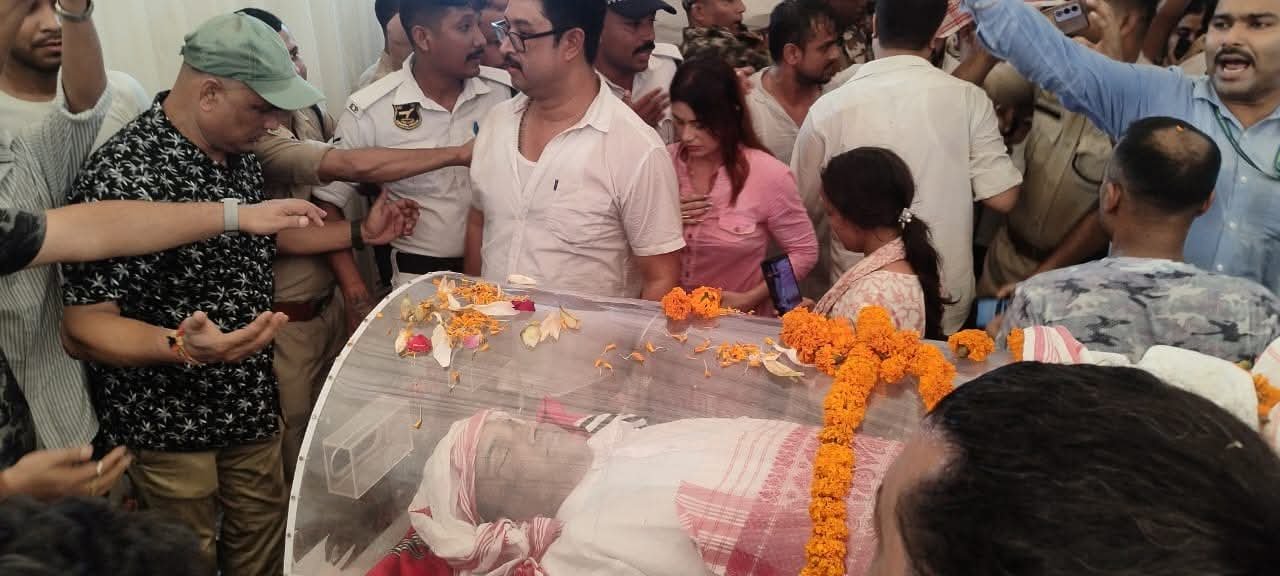 আজি শুদ্ধ বগা সাজেৰে শুই আছে জুবিন, ভালপোৱাধৰণেই আজিও মূৰত বান্ধিছে গামোছা, শান্ত সমাহিত জুবিনক দেখি সকলোকে বাগৰিছে চকুলো
